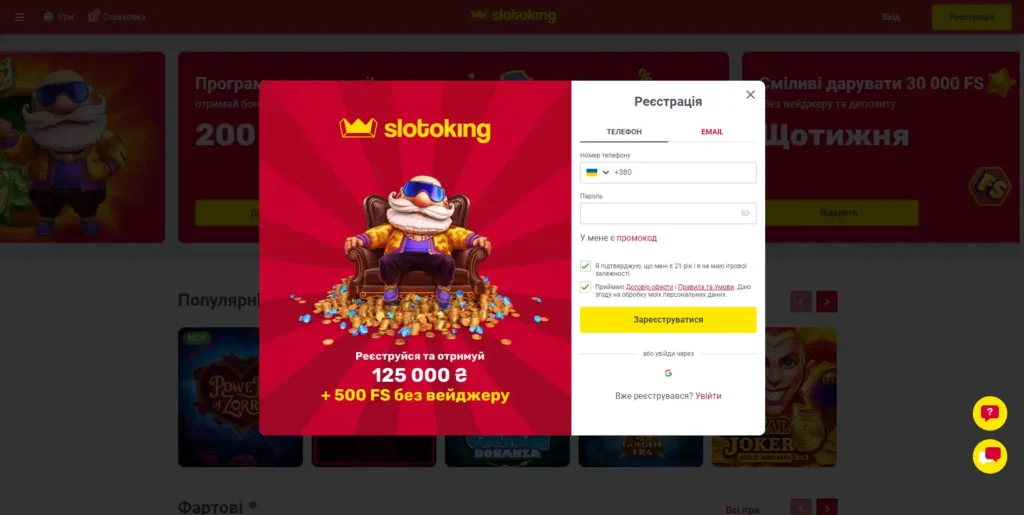 Slotoking Casino — це офіційна українська платформа для онлайн-ігор, яка поєднує великий вибір слотів, швидкі виплати та приємні бонуси. Щоб почати гру, потрібно виконати вхід у Slotoking або пройти реєстрацію на офіційному сайті.